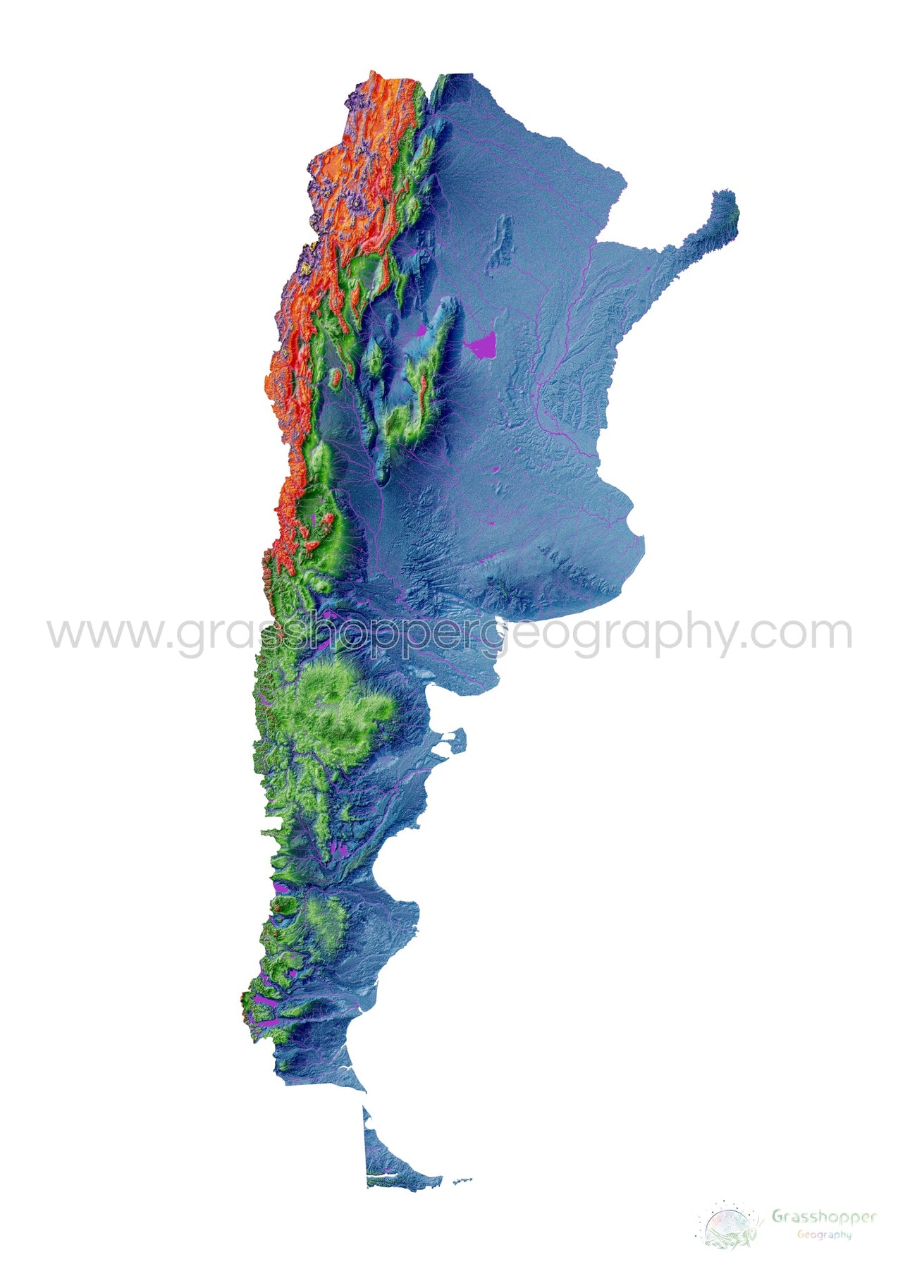 Argentina Elevation map, white Fine Art Print โ Grasshopper