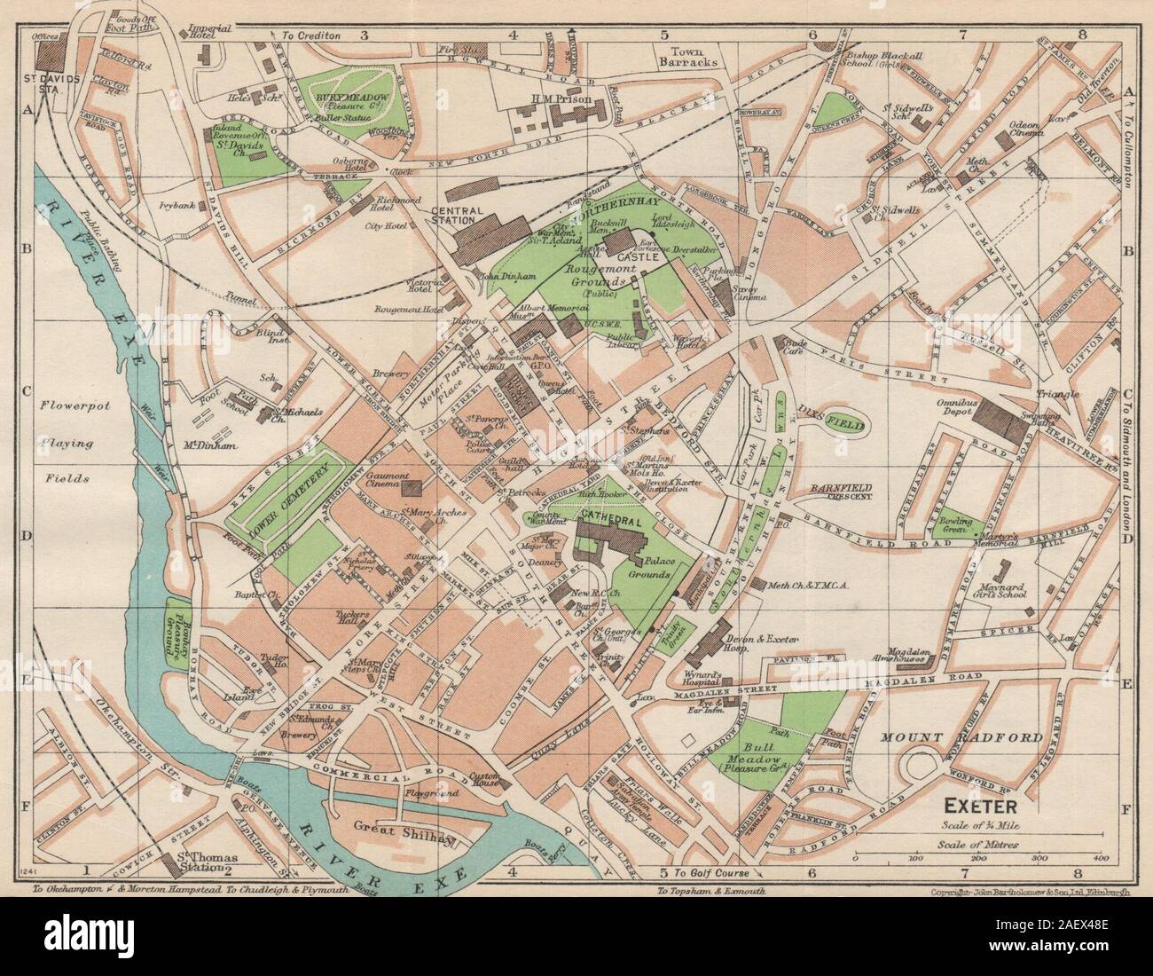 EXETER. Vintage town city map plan. Devon 1950 old vintage chart
