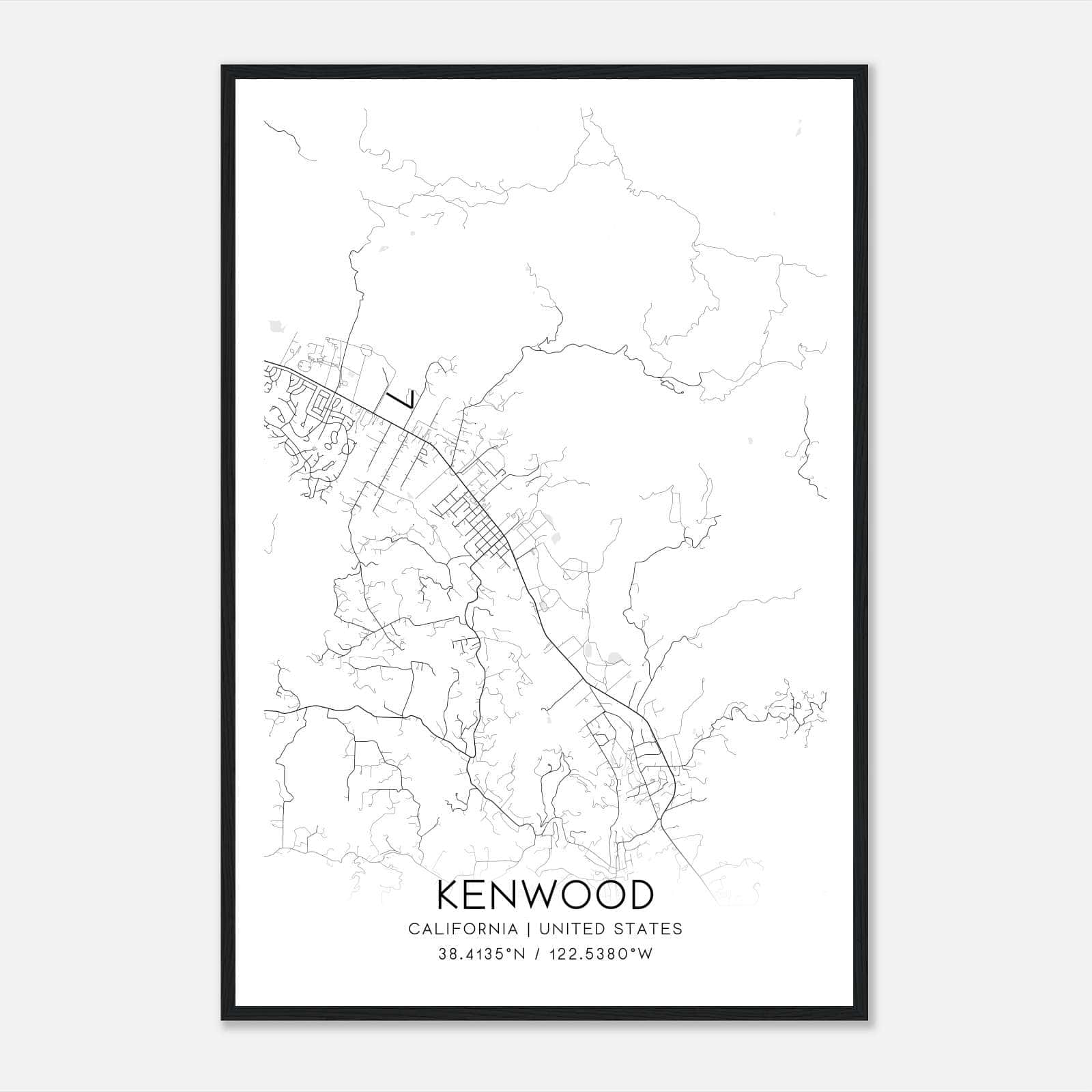 Kenwood California Map Poster, Modern Home Decor Wall Art Print