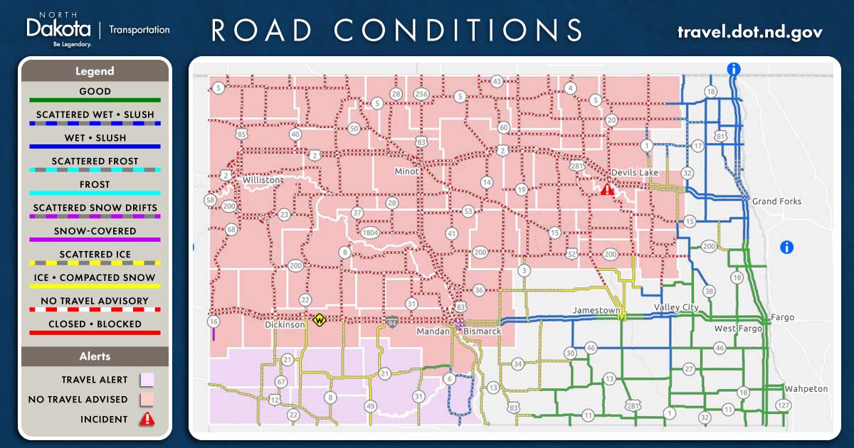 NDDOT on X: “UPDATE! NDDOT has issued Travel Alerts for the